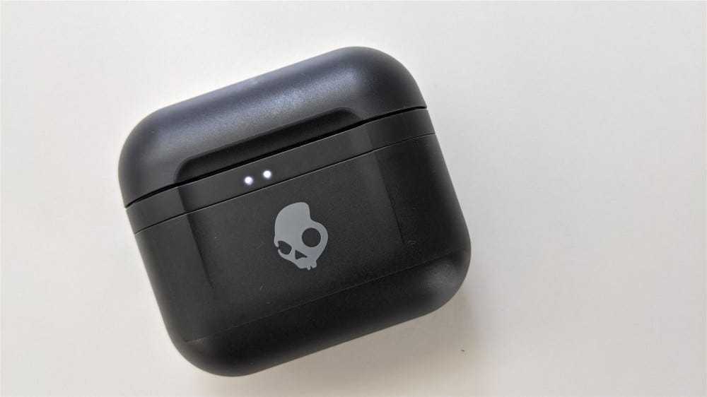 Это простой черный корпус с логотипом Skullcandy на передней панели, который может быть неприятен для некоторых людей из-за «юношеского» внешнего вида, но мне это нравится. Зарядный порт USB-C находится снизу, а маленький разрядник сзади показывает, где находится беспроводная зарядная катушка.