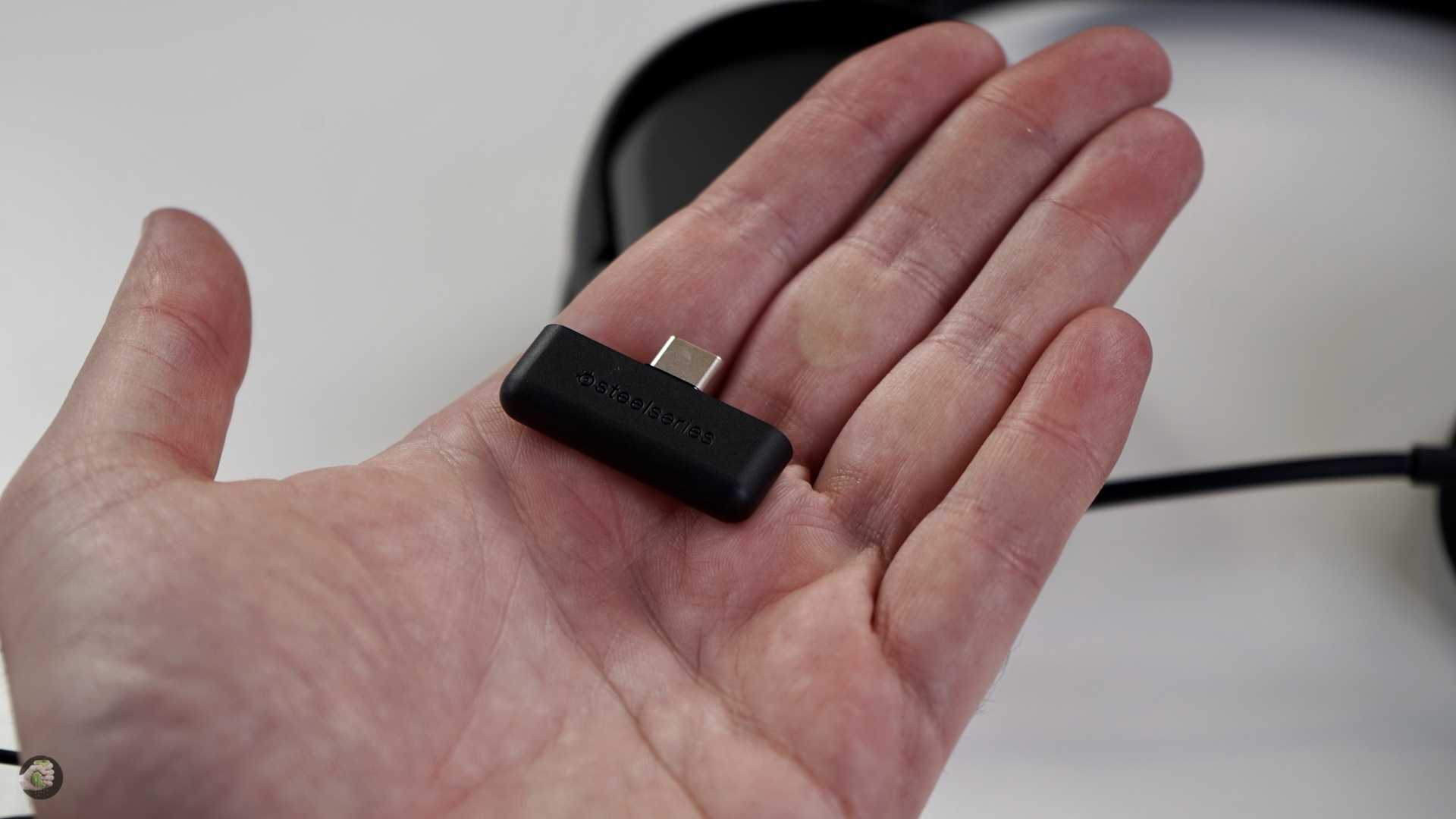 Ну и последний момент — телефоны на Android. Так как Steelseries Arctis 1 Wireless нельзя подключить по Bluetooth, то для смартфона приходится использовать всё тот же передатчик. Его нужно воткнуть в разъём Type-C на вашем телефоне и всё заработает