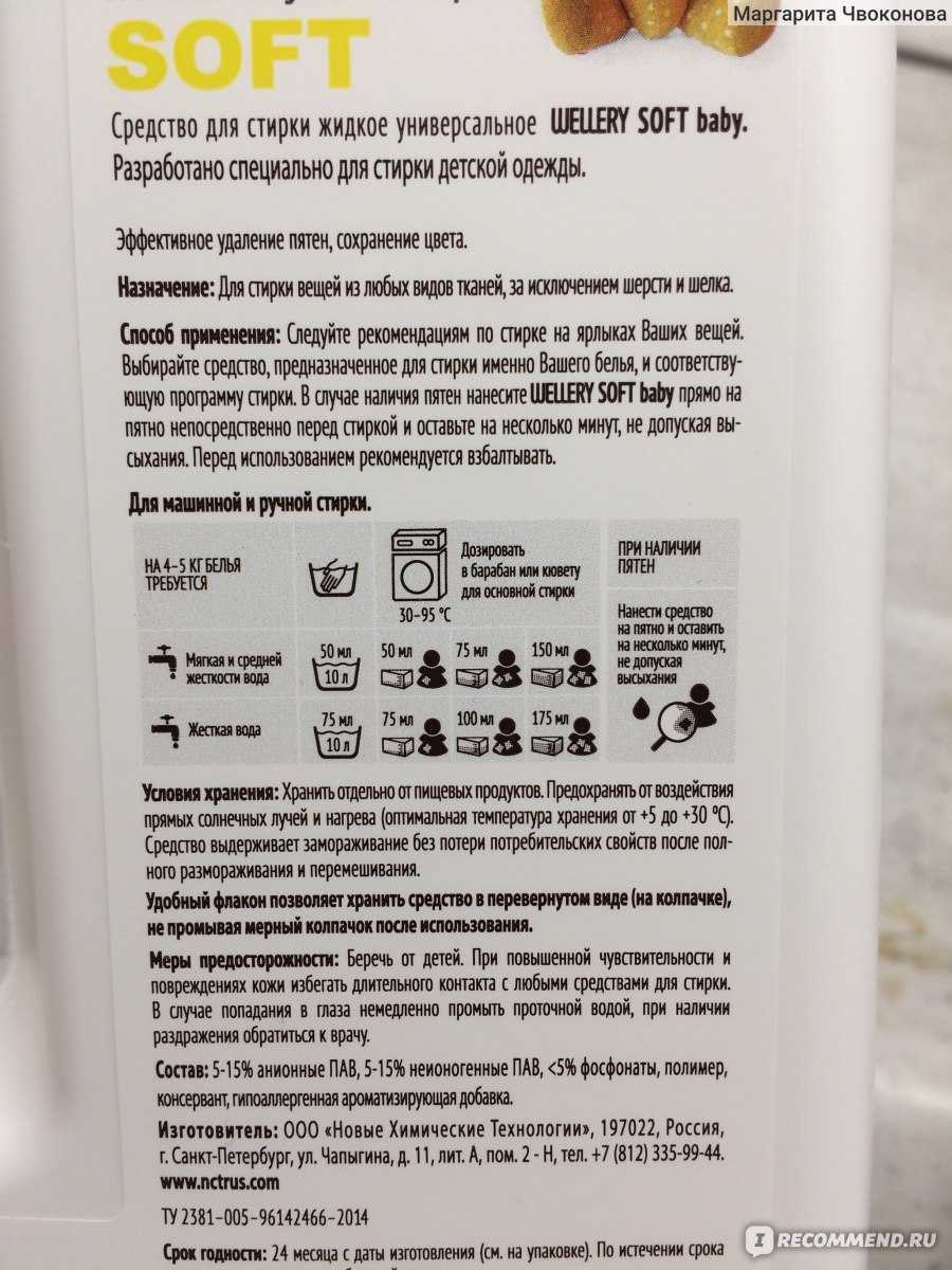 Обратите внимание на наличие смягчающих веществ, полимеров и энзимов. Они сохраняют как можно дольше опрятный вид вещей и эффективно удаляют загрязнения.