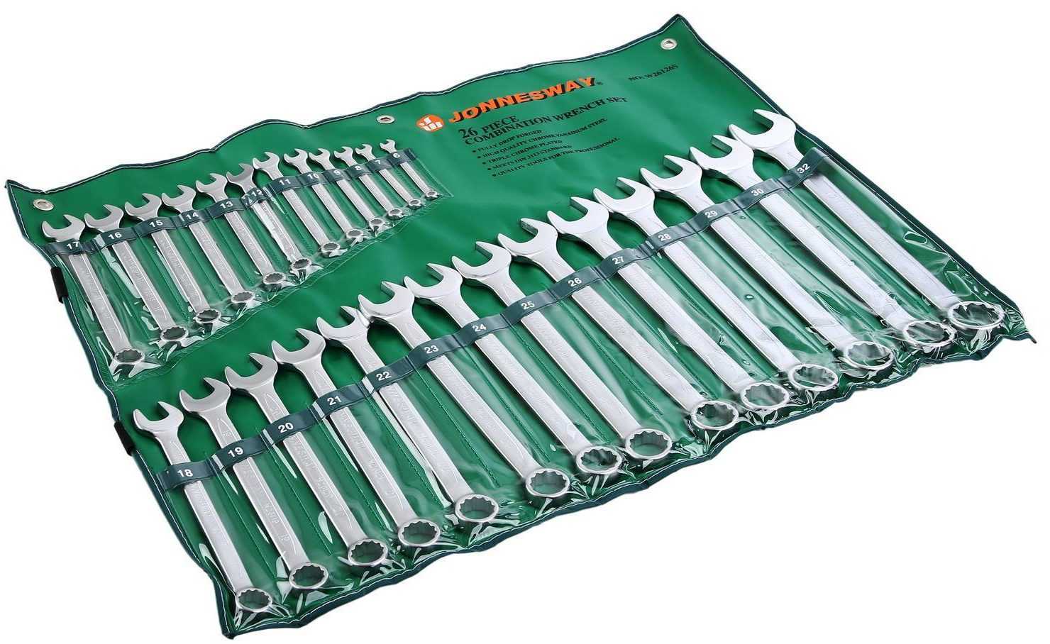 Важно отметить, что чемодан от JONNESWAY хорошо подойдет для тех, кто часто пользуется гаечными ключами. Их заявлено 19 штук в размерах от 6 до 32 мм