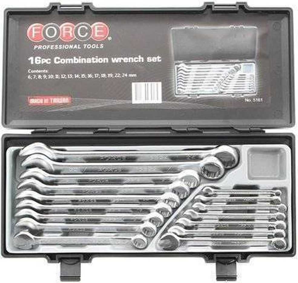 Эта сборка продается в кейсе из крепкого пластика. Это дает дополнительный комфорт в содержании инструмента и переноске. В кейсе предусмотрены выемки для размещения приборов, каждая ячейка промаркирована для комфортной навигации. В коробке располагаются 16 ключей в размерном диапазоне 6-24мм., сделаны из стали, устойчивы перед повышенными нагрузками. В продаже доступны по средней цене от 3529 руб.