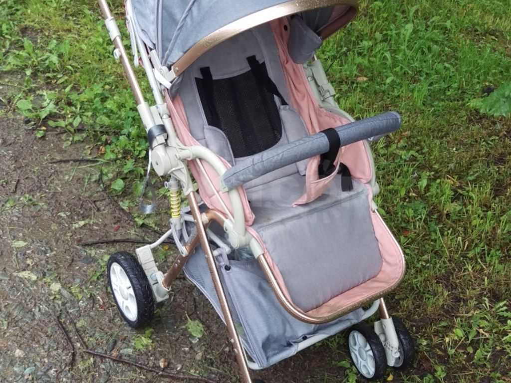 Модель выглядит интересно и дорого, сами материалы изготовления высокого качества, ткань плотная. Спинка раскладывается в горизонталь, единственное неудобство – высокому ребенку сетка в изголовье будет упираться в макушку. В корзину влезет много всего. Амортизация удовлетворительная, проходимость тоже на среднем уровне. С зафиксированными колесами коляска шагает по лестнице. В комплекте идут накидка на ноги и подстаканник. Коляска не самая легкая, но вес обеспечивает ее устойчивость.