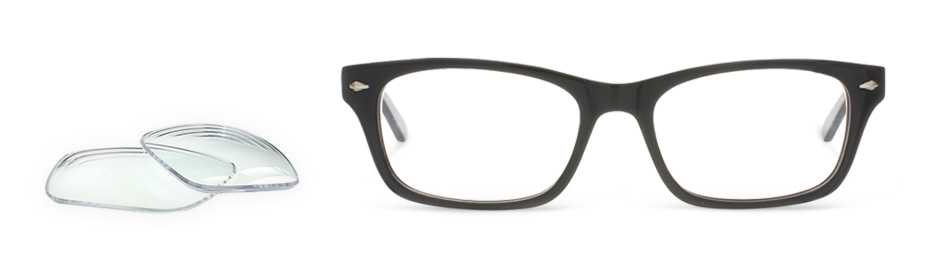 Для коррекции зрения при данной аномалии рефракции используются минусовые (отрицательные) оптические изделия. Они имеют вогнутую форму и обозначаются знаком минус «-», потому в офтальмологии принято утверждать, что близорукость — это «минус». На начальных стадиях заболевания данные оптические изделия могут обеспечить пациенту 100% остроту зрения. Однако при более выраженной миопии не удается достичь этого показателя. Чем выше степень патологии, тем ниже острота зрения при ношении оптики.