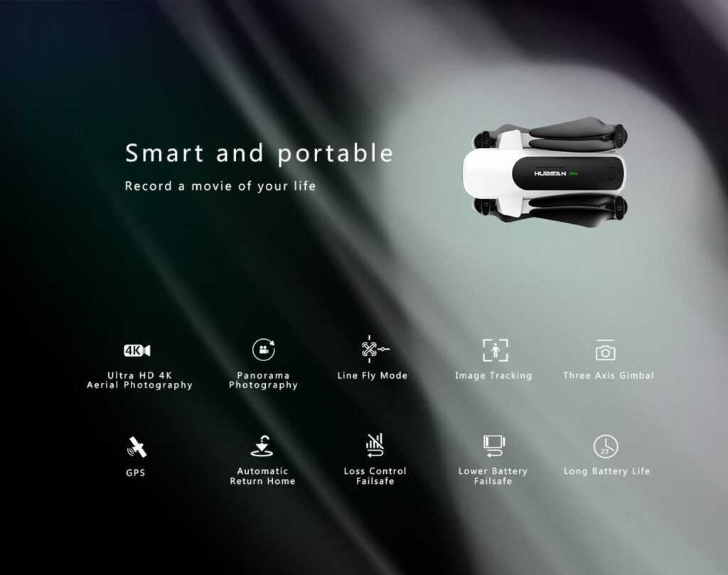 Гироскоп: 6 осей Размеры: сложенный – 14х14х6 см; разложенный – 26х27х6 см Камера: двойная 1080р, 4К Время полета: 20 мин Дистанция: 100 м Время зарядки: 120 мин Тип двигателя: щеточный