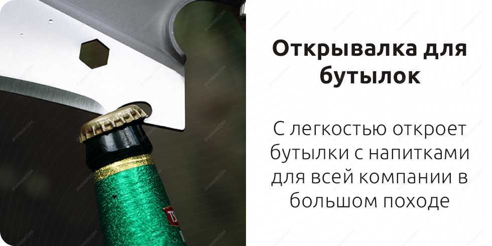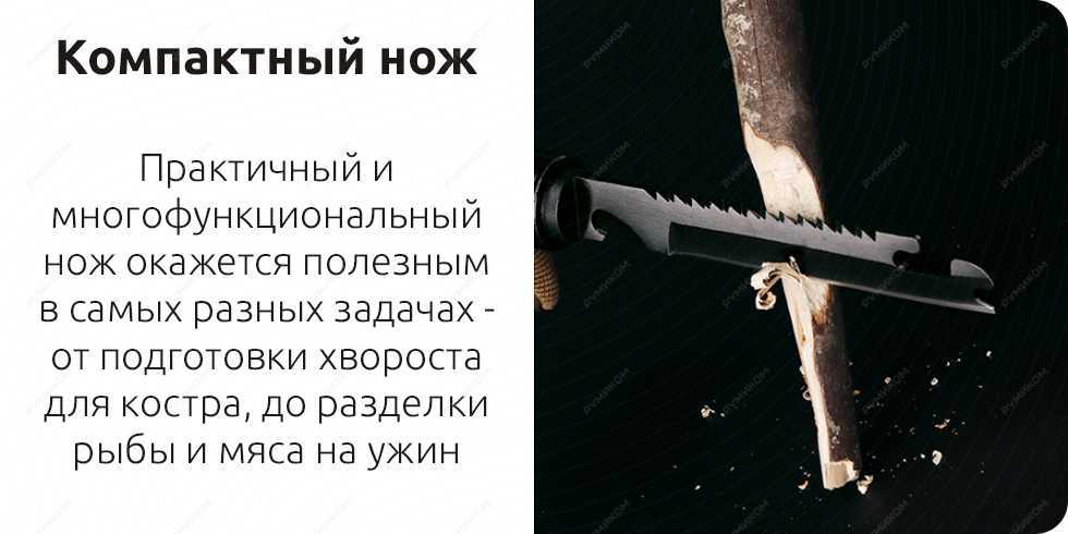 - наличие надежных фиксаторов и ограничителей для разводного ключа, выкидных или выдвижных ножей, открывашек, пил-ножовок и штыкового лотка лопаты;