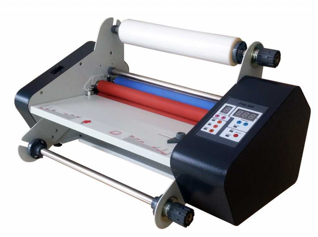 Рулонные. Типографские предприятия используют такие устройства для многотиражной продукции разных форматов, начиная с А0. Ламинирующая пленка подается из рулона на валы, между которыми пропускается изделие. Это оборудование позволяет работать с материалами разной плотности. Настройка такого устройства занимает продолжительное время. Машина нередко занимает много места на предприятии.