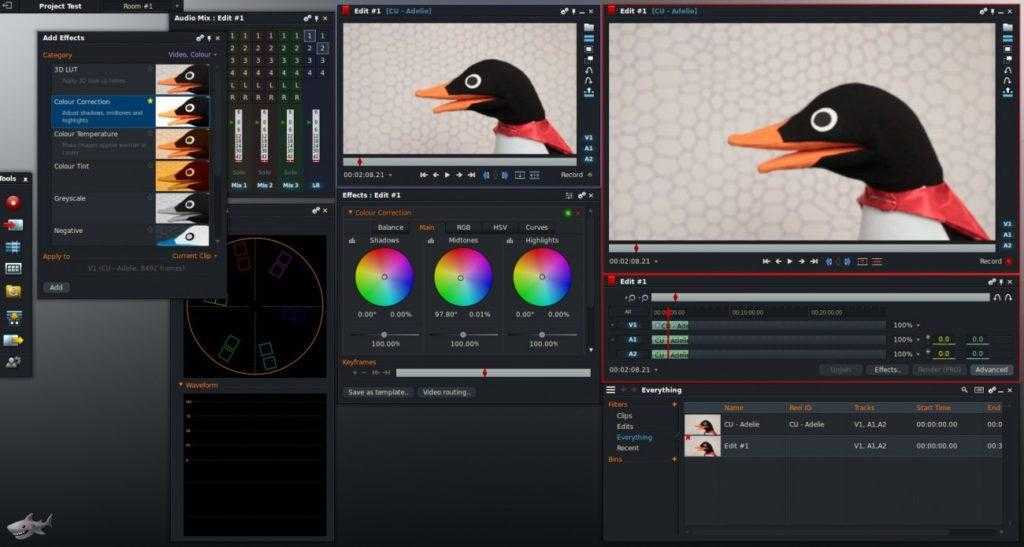 | Lightworks | Windows, Linux, MacOS | Стандартный набор, есть оригинальные фильтры | Стандартный набор | Работа со звуком | Бесплатная | Новичкам и профессионалам |