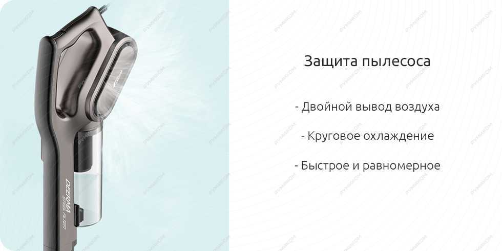 По бокам корпуса пылесоса предусмотрено два кольцевых отверстия для быстрого вывода воздуха и защиты электродвигателя.