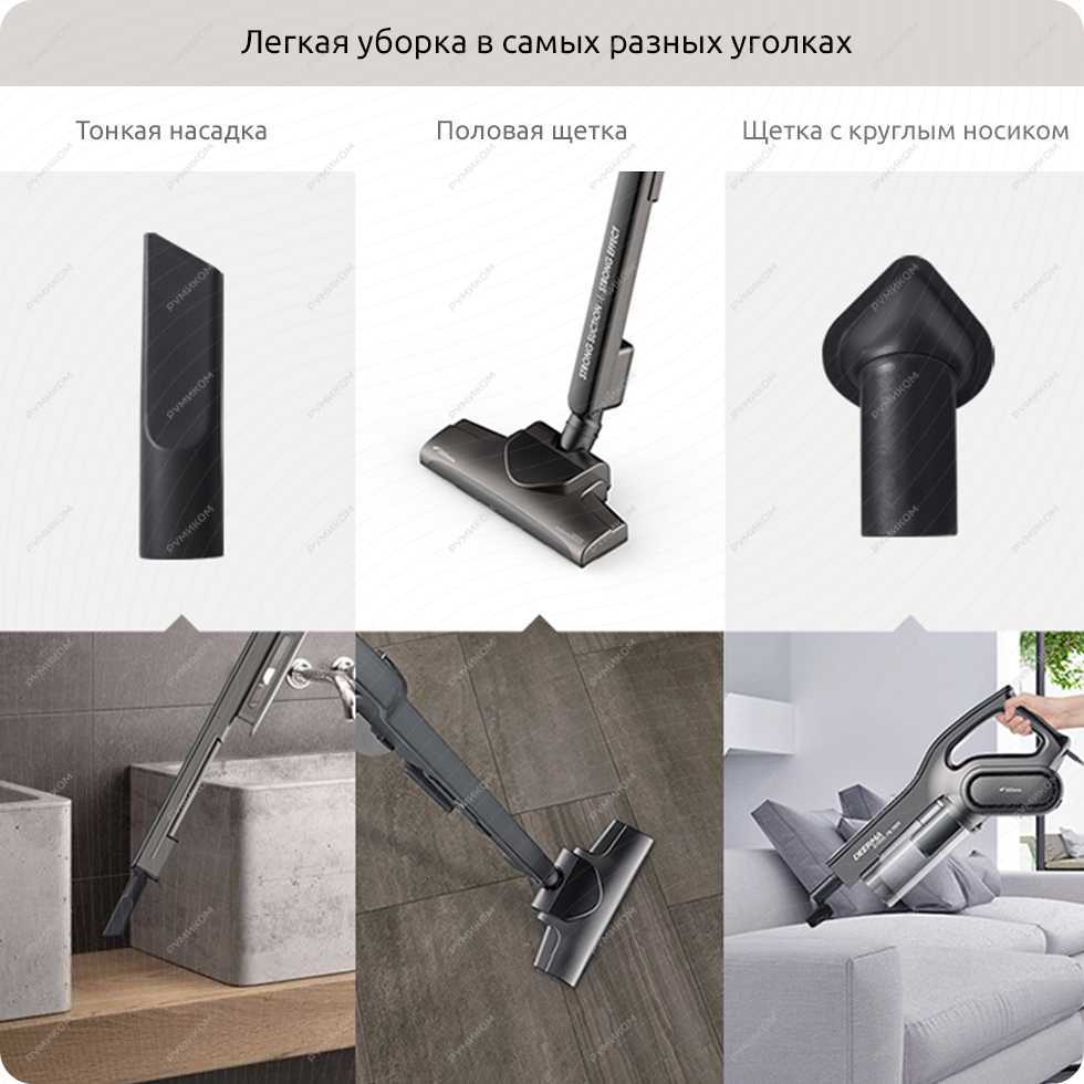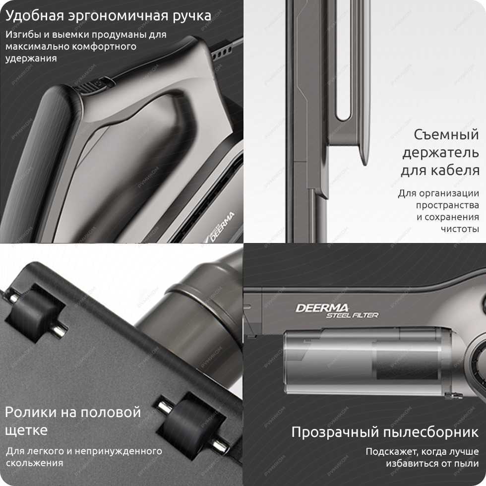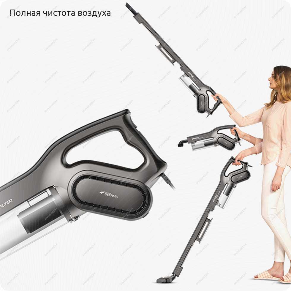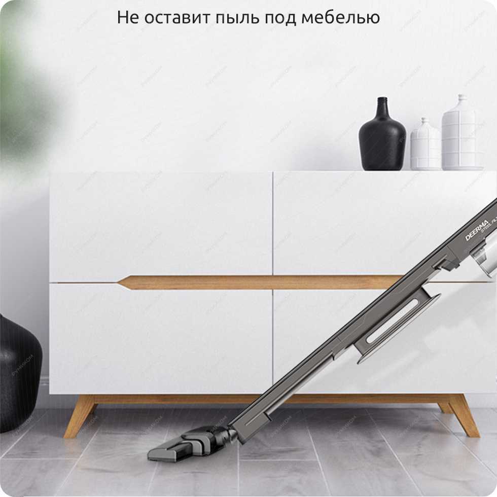 Пылесос Deerma спроектирован таким образом, чтобы его центр тяжести был расположен возле ручки. Сама ручка из двух сегментов отлично подходит для работы удержания пылесоса под разными углами. Кроме того, сам пылесос Deerma лишен неуклюжих форм, способных вызвать усталость после длительной работы в разных режимах.