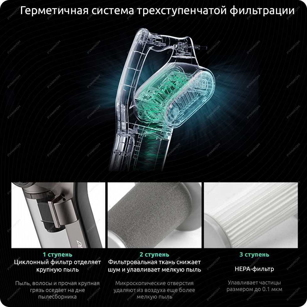 Даже мельчайшие пылинки не проскользнут сквозь систему циклонной фильтрации пылесоса Deerma, которая улавливает всю грязь и предотвращает вторичное загрязнение воздуха.