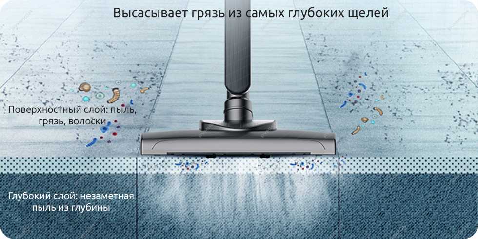 Особая конструкция воздуховодов снижает сопротивление воздуха и предотвращает потерю силы всасывания. За счет мощного электродвигателя пылесос Deerma способен высасывать даже въевшуюся грязь и пыль из глубоких щелей.