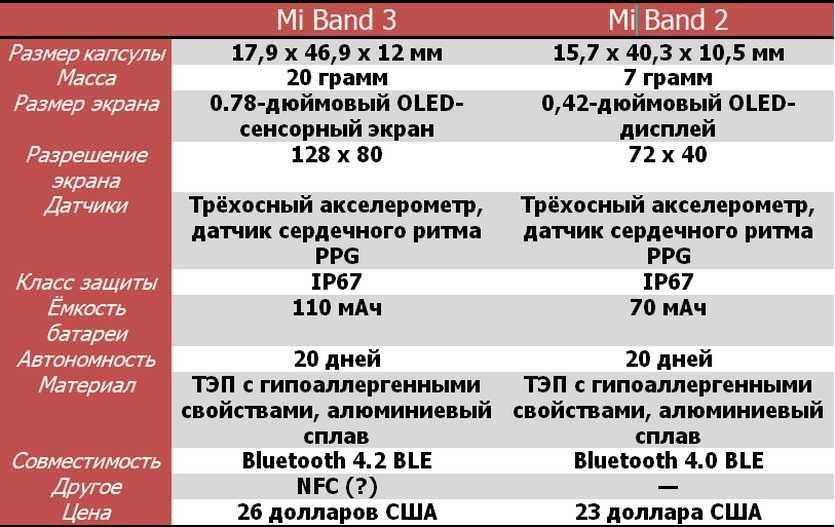 Если вплотную сравнивать Mi Band 2 и Mi Band 3, окажется, что серьезных изменений в хорошую сторону не произошло. Посмотрим на таблицу-сравнение: