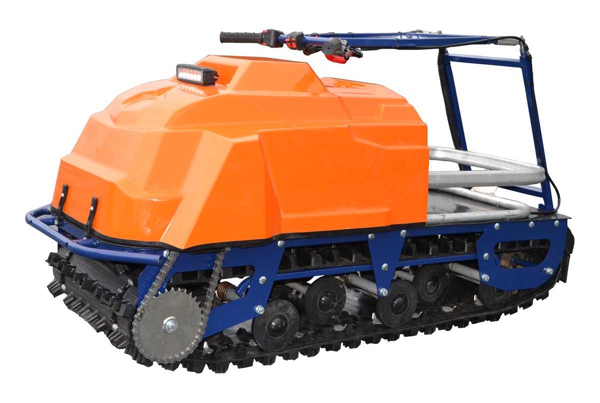 Модель с укороченной базой, может транспортироваться в багажнике небольшого автомобиля. Сохраняет работоспособность при температуре до -35 градусов, так как имеет мощный мотор и карбюратор, подогревающийся выхлопами. Гусеница цельнорезиновая, почти не изнашивается, позволяет свободно перемещаться по асфальту, земле, снегу.