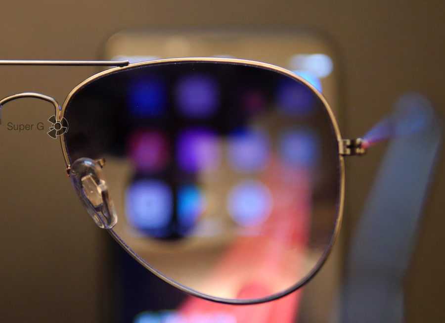 Кстати, поляризационный фильтр очень хорошо проявляет себя при работе со смартфонами. Надел такие очки, поднёс смартфон, нажал на кнопку включения и… ничего не изменилось, экран не загорелся. Снимаешь очки, а дисплей, оказывается, работает, как и положено. Тут всё просто. Поляризационный фильтр и ЖК-экраны — это две несовместимые вещи. Кстати, это отличный способ быстро проверить, имеют ли какие-нибудь очки поляризационную защиту или нет.