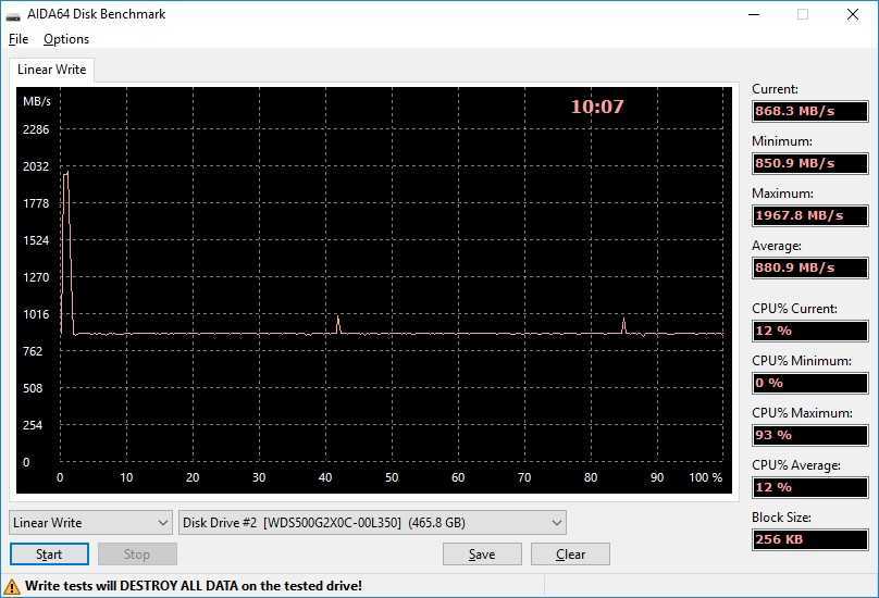 Полный объем диска – 500090007552 байт, что соответствует 465 ГБ. Накопитель отформатирован в файловую систему NTFS. Тестирование производилось как при полностью свободном дисковом пространстве, так и при заполненном наполовину.