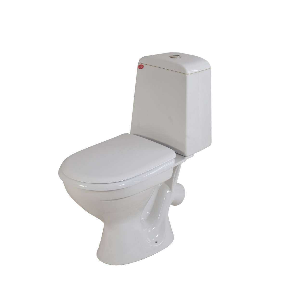 Открывает наш рейтинг стильный унитаз Лада от российской компании Sanita. Модель изготовлена из глазурованного фарфора — экологически безопасного и долговечного материала. Поток в виде воронки омывает поверхность чаши целиком, позволяя поддерживать ее чистоту в течение длительного времени. При помощи механической кнопки старт — стоп можно прекратить подачу воды при устранении всех загрязнений, предотвратив ее нецелесообразное расходование. Современная европейская арматура обеспечивает плавный слив и бесшумное наполнение бачка. Прочное сиденье с крышкой выполнено из прочного и гигиеничного дюропласта.